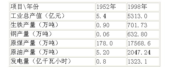 表三:1998年與1952年少數(shù)民族自治地方主要工業(yè)發(fā)展對(duì)比