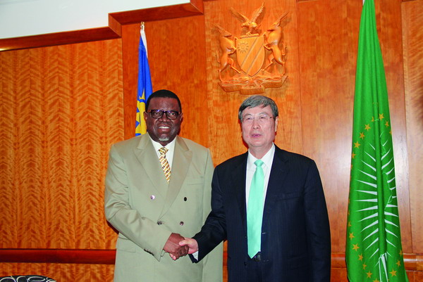 3月24日,納米比亞總理根哥布在總理府會(huì)見(jiàn)黃孟復(fù)理事長(zhǎng) 陳丹 攝