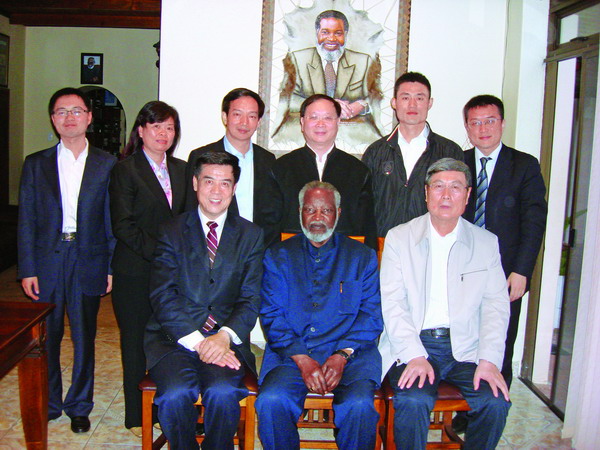 3月24日,溫得和克市郊,一所綠蔭掩映的鄉(xiāng)間農(nóng)舍,是納米比亞首任總統(tǒng)努喬馬的寓所。為了表達(dá)對(duì)中國(guó)客人的友好,努喬馬總統(tǒng)在家中會(huì)見(jiàn)我們。這位已85歲高齡、總計(jì)訪華近20次的非洲老一代政治家,見(jiàn)到黃孟復(fù)一行到訪,喜悅之情溢于言表。他滿懷深情地回憶起上世紀(jì)60年代在中國(guó)軍事院校受訓(xùn)時(shí)的美好時(shí)光,繪聲繪色地講述將毛澤東游擊戰(zhàn)思想靈活運(yùn)用到納爭(zhēng)取民族獨(dú)立斗爭(zhēng)中的故事。兩小時(shí)撫今追昔、暢敘友誼的歡快時(shí)光,老總統(tǒng)言猶未盡,如果不是我們主動(dòng)告別,他不知道還要和我們交談多久。離別時(shí),老總統(tǒng)與大家合影留念,依依不舍。
