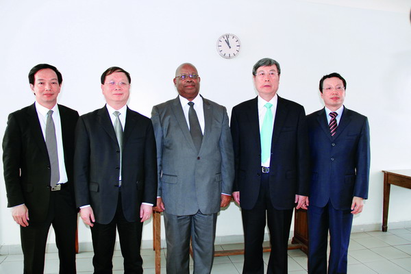 3月28日,津巴布韋眾議長(zhǎng)穆登達(dá)會(huì)見(jiàn)代表團(tuán)一行。右起:林琳、黃孟復(fù)、穆登達(dá)、慈愛(ài)民、陳丹?!㈢āz