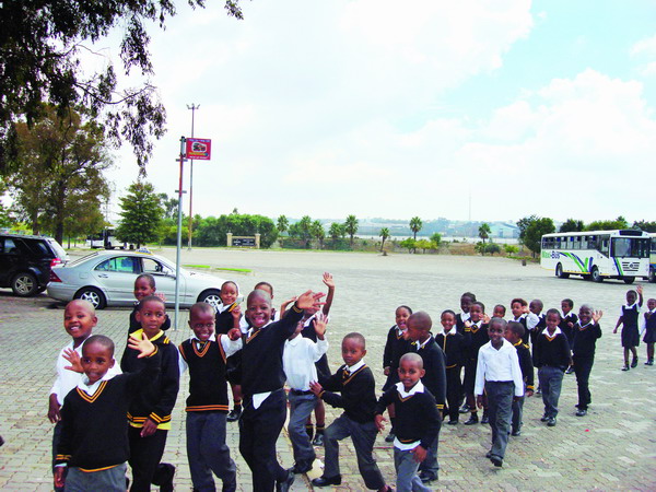 參觀約翰內(nèi)斯堡種族隔離紀(jì)念館的南非兒童向代表團(tuán)熱情揮手 慈愛(ài)民 攝