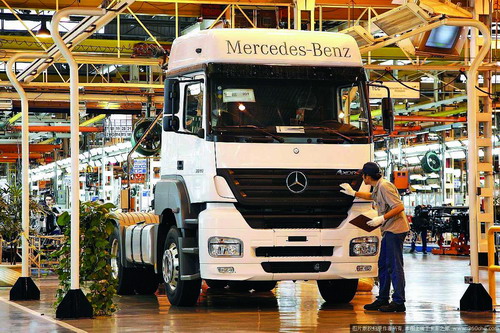 德國奔馳卡車工廠員工檢查流水作業(yè)