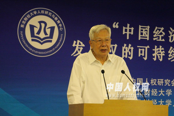 十屆全國政協(xié)副主席、中國人權(quán)研究會會長羅豪才出席研討會并致辭?!z影:石堅