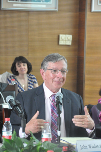韓大元院長首先代表學(xué)院發(fā)表了歡迎致辭。他指出,21世紀(jì)經(jīng)濟、科技迅速發(fā)展,但是我們卻喪失了一些人權(quán)價值,所以應(yīng)當(dāng)反思如何構(gòu)建和完善人權(quán)體系。中國人民大學(xué)法學(xué)院成立于1950年,經(jīng)過65年的發(fā)展,法學(xué)院有義務(wù)承擔(dān)起社會責(zé)任,推動中國和世界人權(quán)事業(yè)的發(fā)展。本次座談交流會是一個很好的契機,中方和美方的學(xué)者可以相互交流自己的觀點,相互了解兩國人權(quán)事業(yè)的發(fā)展?fàn)顩r,并且讓法學(xué)院的學(xué)生對人權(quán)有一個更深層次的理解。韓大元院長還特別感謝黎建飛教授為中國殘疾人事業(yè)發(fā)展所作出的巨大貢獻(xiàn)。