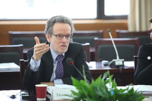 耶魯大學(xué)哲學(xué)院Thomas Pogge教授、中國人民大學(xué)哲學(xué)院院長姚新中教授、中國人民大學(xué)法學(xué)院朱景文教授、清華大學(xué)法學(xué)院王明遠(yuǎn)教授作為與談人同參會嘉賓共同討論氣候正義、環(huán)境保護(hù)與人類的未來這一主題。來自不同學(xué)科、不同部門的專家學(xué)者開展了熱烈的討論,雖然有不同的學(xué)術(shù)觀點(diǎn),但毋庸置疑的是氣候問題是人類共同面臨的問題,需要所有人類共同來應(yīng)對,然而最終解決氣候問題還需回歸法治,法治是我們價值的共識。