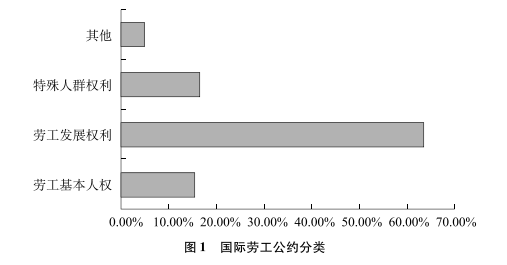 按照以上標準對國際勞工公約進行分類,如圖1所示,可以更加直觀地看出各類公約在所有國際勞工公約中所占的比重。