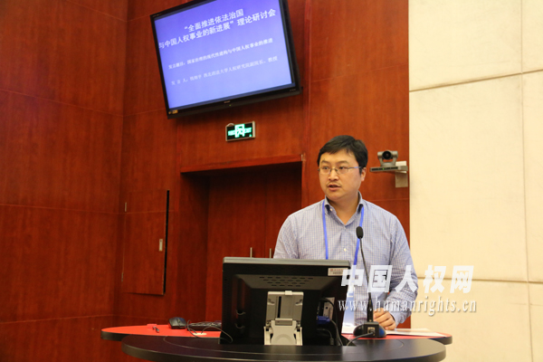 西北政法大學(xué)人權(quán)研究院副院長(zhǎng)錢錦宇教授作大會(huì)發(fā)言(攝影:賈璞玉)