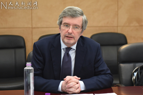 4月18日,歐洲人權(quán)法院法官、比利時魯汶大學(xué)著名學(xué)者Paul Lemmens應(yīng)邀訪問了中國人民大學(xué)蘇州校區(qū),并與“中國人民大學(xué)中歐歐洲法”項(xiàng)目師生在開太樓進(jìn)行座談交流。座談會由國際學(xué)院副院長、“中歐歐洲法”項(xiàng)目負(fù)責(zé)人石佳友主持。