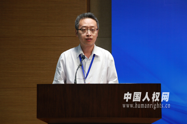 中國社會科學(xué)院人權(quán)研究中心執(zhí)行主任、研究員柳華文教授在會議發(fā)言。(中國人權(quán)網(wǎng) 焦飛攝)