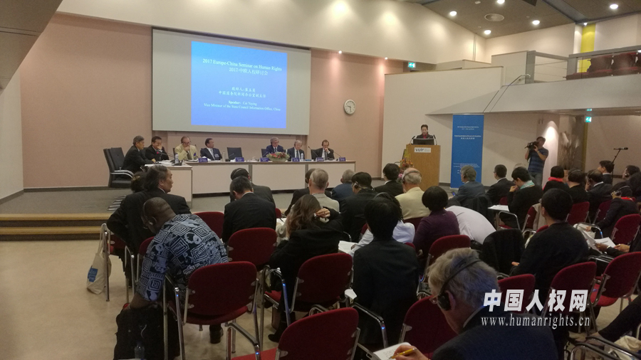 圖為“2017·中歐人權(quán)研討會(huì)”研討會(huì)會(huì)議現(xiàn)場(chǎng)。