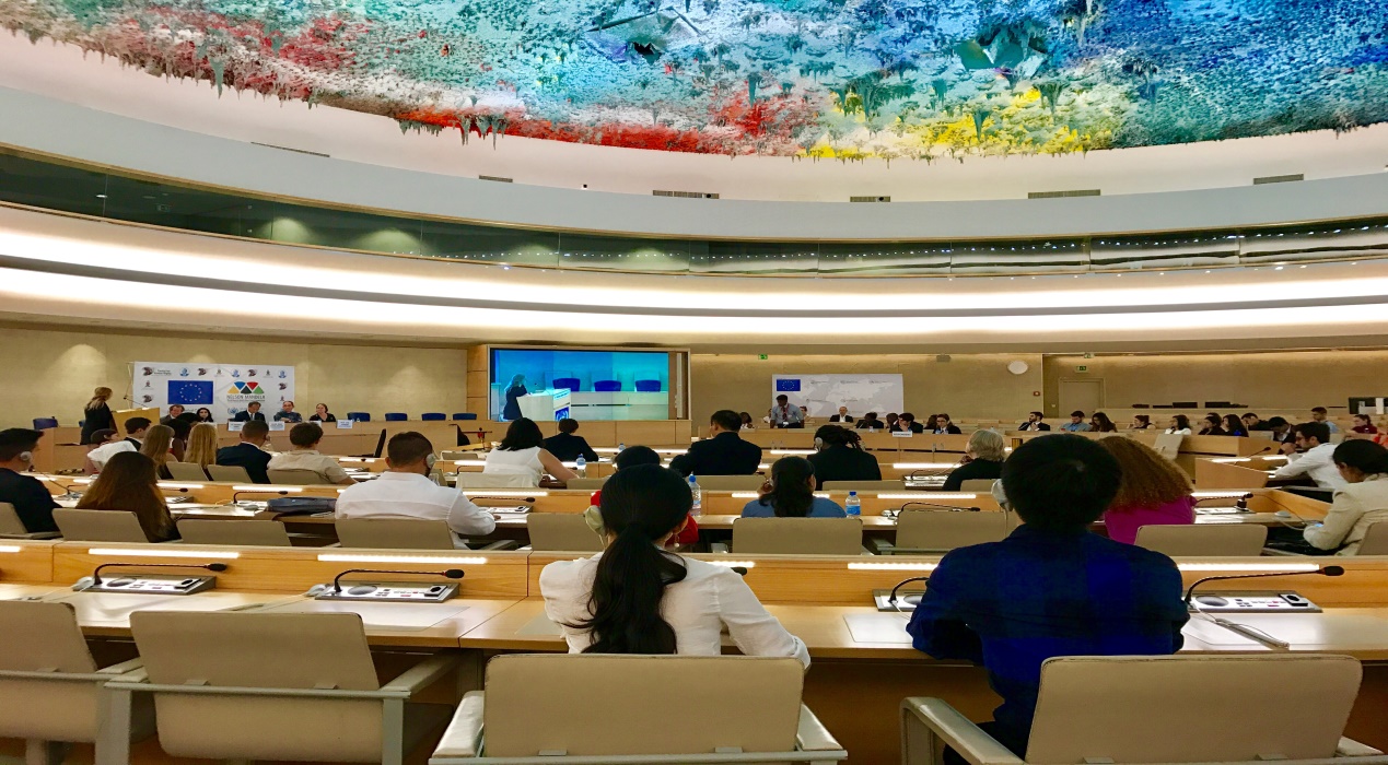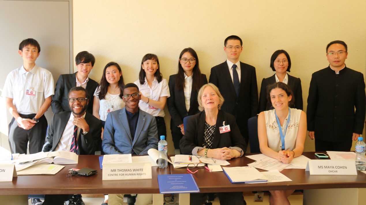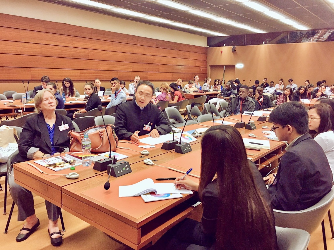 7月20日,為期一天的世界人權(quán)模擬法庭研討會在萬國宮順利舉行,聯(lián)合國人權(quán)理事會會長埃里克•提斯都內(nèi)(Eric Tistounet)、聯(lián)合國人權(quán)事務(wù)委員會成員克里斯托弗•海恩斯(Christof Heyns)、聯(lián)合國人權(quán)高專辦官員馬克•利蒙(Marc Limon)、聯(lián)合國人權(quán)高專辦官員伊萬娜•馬克諾娃•夏儂高娃(Ivana Machonova Schellongova)、歐洲大學(xué)校際人權(quán)與民主中心主任維羅妮卡•戈麥斯(Veronica Gomez)、人權(quán)觀察倡導(dǎo)董事約翰•費雪(John Fisher)等與會,復(fù)旦代表隊受邀參加,指導(dǎo)教師涂云新作與會交流發(fā)言。復(fù)旦代表隊還受到聯(lián)合國日內(nèi)瓦辦公室中方工作人員的熱情接待并參觀了中國國家主席習(xí)近平于2017年1月18日訪問聯(lián)合國日內(nèi)瓦總部發(fā)表《共同構(gòu)建人類命運共同體》演講的大會廳。