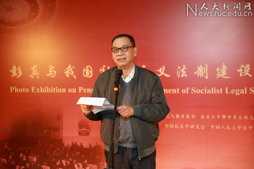 2017年12月4日上午10時,“彭真與我國社會主義法制建設圖片展”開幕式在中國人民大學博物館舉辦。本次展覽由彭真民主法制思想研究與教育基金、彭真生平暨中共太原支部舊址紀念館、中國憲法學研究會、中國民法學研究會、中國人民大學法學院和中國人民大學博物館聯(lián)合舉辦。出席本次活動的嘉賓有中國人民大學校長劉偉、第十屆全國人大法律委員會主任委員楊景宇,原全國人大常委會法工委副主任張春生,彭真民主法制思想研究與教育基金副理事長傅洋,中國人民大學法學院院長王軼,彭真基金副理事長、中國人民大學法學院教授韓大元,中國人民大學博物館副館長李惠,彭真生平暨中共太原支部舊址紀念館館長楊士彪,中國人民大學法學院教授朱力宇、周珂、王欣新以及法學院的部分教師。本次開幕式由中國人民大學法學院教授朱力宇主持。