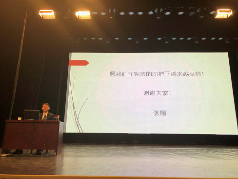張翔教授圍繞“憲法與公民到底有什么樣的關系”展開講座,介紹了憲法對于公民的重要意義,并代表人大法學院向首師大附中同學贈送憲法文本。通過這次普法活動,首師大附中的同學不僅對憲法的基本理念的兩大核心——限制國家和保障人權有了更加深刻的理解,同時對憲法和自己的生活之間的關系也有了更加清晰的認識。