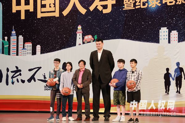 姚明與導演焦波、孩子們合影。(焦飛攝)