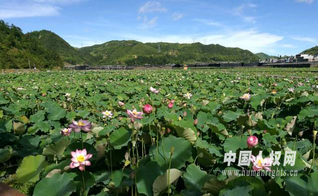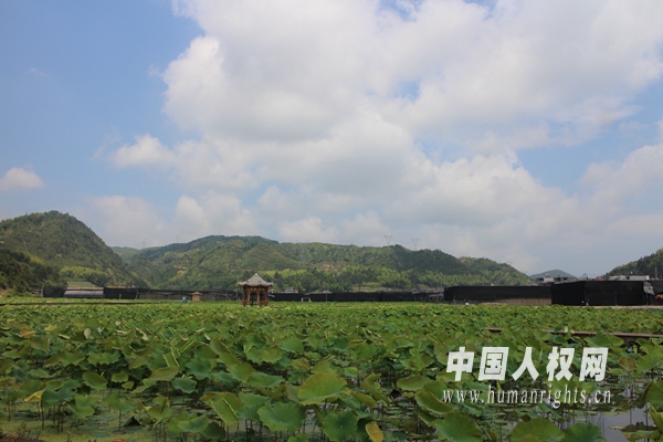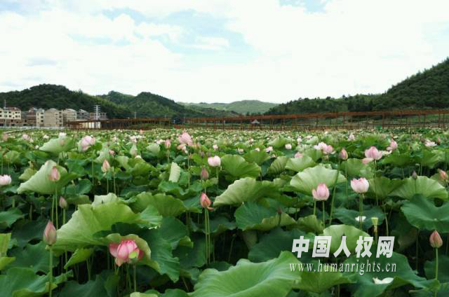 嶺下鄉(xiāng)荷花基地。(中國(guó)人權(quán)網(wǎng)記者 石堅(jiān)攝)