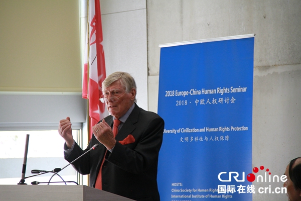 由中國(guó)人權(quán)研究會(huì)和國(guó)際人權(quán)研究院共同主辦的“2018·中歐人權(quán)研討會(huì)”6月28日在位于比利時(shí)布魯日的歐洲學(xué)院舉行。來(lái)自中歐人權(quán)領(lǐng)域的60多位專(zhuān)家學(xué)者圍繞“文明多樣性與人權(quán)保障”這一主題進(jìn)行了研討交流。