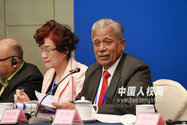 印度Age Care India人權組織主席戴瓦拉亞普拉姆·拉馬沙米·卡西克揚做論壇發(fā)言。(馬陽陽攝)