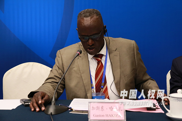 布隆迪國家行政學院院長加斯東·哈基扎做論壇發(fā)言。(馬陽陽攝)