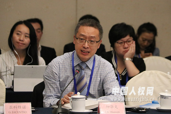 中國社會科學院人權研究中心執(zhí)行主任、研究員柳華文做論壇發(fā)言。(馬陽陽攝)