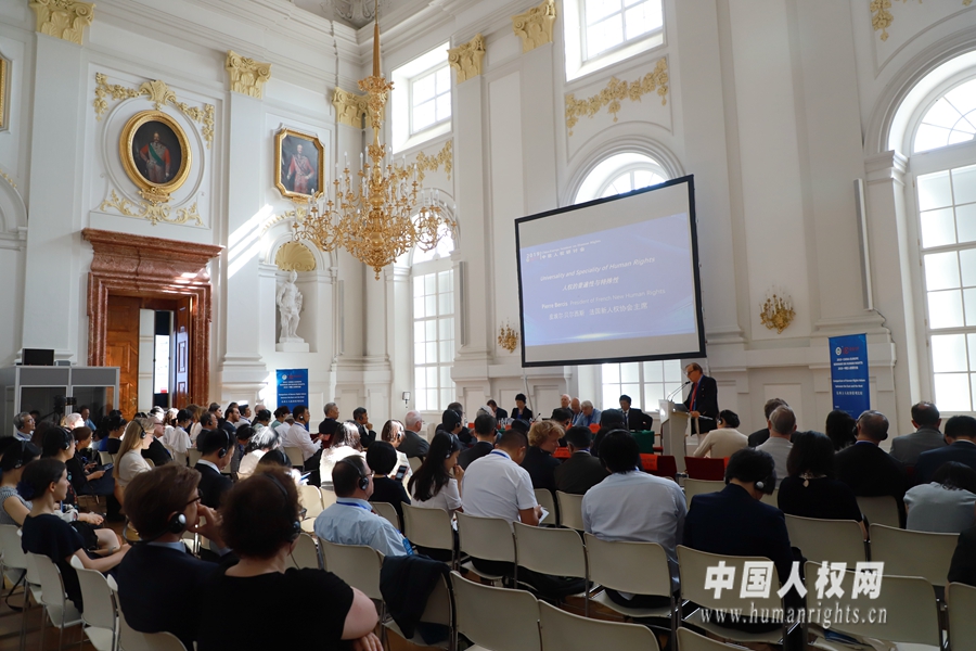 法國新人權(quán)協(xié)會(huì)主席皮埃爾·貝爾西斯作題為《人權(quán)的普遍性與特殊性》的大會(huì)發(fā)言。攝影 賈璞玉