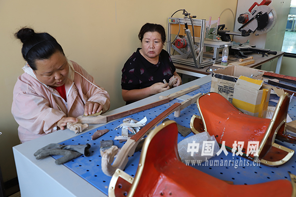 “這里的學(xué)習(xí)都是免學(xué)費(fèi)的,包教包會,我上完課程后,就留在這里工作了。打磨馬頭琴琴頭是按件計費(fèi),我一天能打磨好幾個?,F(xiàn)在,我每天工作七八個小時,風(fēng)吹不著雨淋不著,收入還能跟以前給商店副食送貨的時候差不多。”艷芳笑著告訴記者。