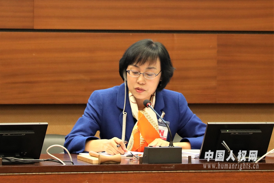 9月9日,中國(guó)人權(quán)研究會(huì)在日內(nèi)瓦萬(wàn)國(guó)宮舉辦“新中國(guó)人權(quán)事業(yè)發(fā)展70年”主題邊會(huì),中國(guó)人權(quán)研究會(huì)副秘書(shū)長(zhǎng)吳雷芬主持會(huì)議。攝影:石冬冬 吳雷芬表示,經(jīng)過(guò)70年的不懈努力,中國(guó)的人權(quán)保障水平發(fā)生了翻天覆地的變化。70年間,中國(guó)解決了13億多人民的溫飽問(wèn)題,減少了7億多貧困人口,占全球減貧人口總數(shù)的70%以上。與此同時(shí),中國(guó)的民主法治建設(shè)持續(xù)推進(jìn),司法領(lǐng)域人權(quán)保障取得重大進(jìn)展,人民依法享有的民主權(quán)利和自由更加廣泛。