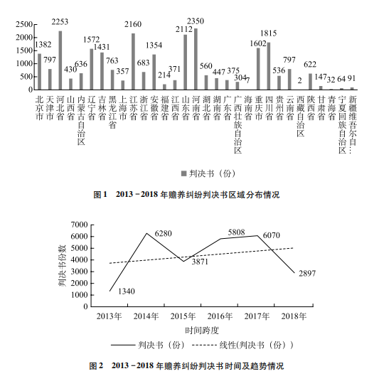 “法律的生命不在于邏輯,而在于經(jīng)驗(yàn)”?!独夏耆藱?quán)益保障法》中規(guī)定的老年人權(quán)利,只有通過(guò)具體的法律實(shí)踐,從紙上規(guī)定走到生活中,才算最終實(shí)現(xiàn)了權(quán)利本身。因此,有必要對(duì)老年人權(quán)利保障的實(shí)踐做更加客觀的描述與把握,這是落實(shí)、修正、完善老年人權(quán)利制度規(guī)范的前提條件,也是實(shí)現(xiàn)老年人權(quán)益司法保障目標(biāo)的首要前提。有關(guān)老年人贍養(yǎng)權(quán)益保障的法律規(guī)范的具體實(shí)現(xiàn)情況如何?尤其是在發(fā)生贍養(yǎng)糾紛時(shí),通過(guò)法律適用,老年贍養(yǎng)權(quán)益的保障情況如何?本文擬以2013-2018年老年人贍養(yǎng)權(quán)益糾紛的司法裁判文書(shū)為分析對(duì)象,梳理糾紛及裁判狀況,嘗試在發(fā)現(xiàn)問(wèn)題基礎(chǔ)上進(jìn)行分析和解釋,希望為老年人權(quán)益法律保障的水平提升,提供一些有益的借鑒。