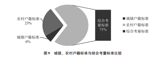最后,裁判邏輯與司法實(shí)踐之間存在差異。司法實(shí)踐和裁判邏輯之間并不是嚴(yán)絲合縫的,法官要考慮的實(shí)際情況與法律規(guī)定之間會(huì)有空隙。樣本顯示,法院裁定贍養(yǎng)的標(biāo)準(zhǔn)一般包括:當(dāng)?shù)亟?jīng)濟(jì)水平、被贍養(yǎng)人實(shí)際需求和贍養(yǎng)人經(jīng)濟(jì)實(shí)力等。將這些因素綜合考量的樣本占比71%。此外,贍養(yǎng)費(fèi)計(jì)算上,戶籍仍有很大影響力,考量城鎮(zhèn)戶籍的占比6%,考量農(nóng)村戶籍的占比23%。見(jiàn)圖9。