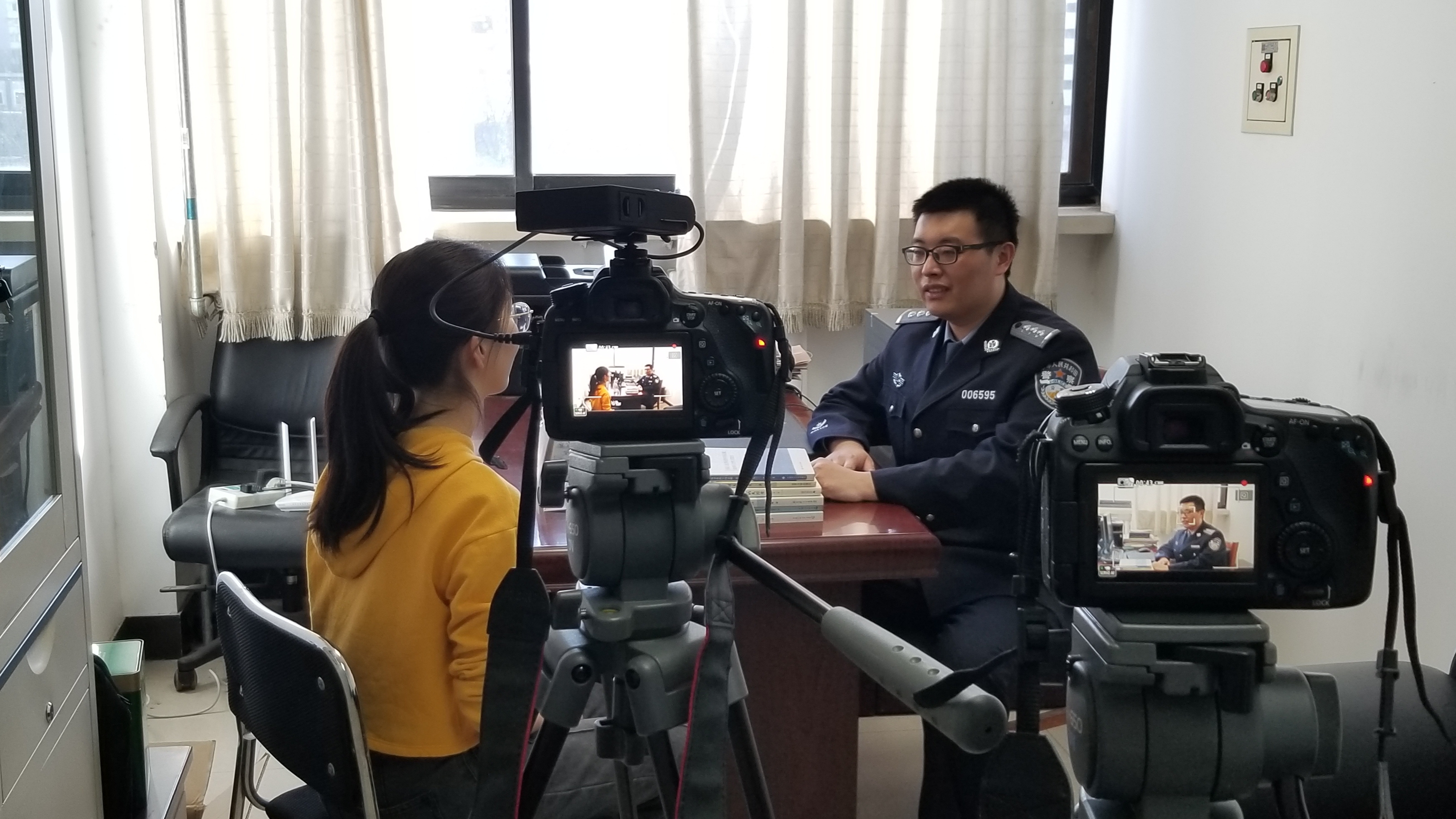 圖為中國人民公安大學青年人權(quán)學者化國宇接受采訪現(xiàn)場。