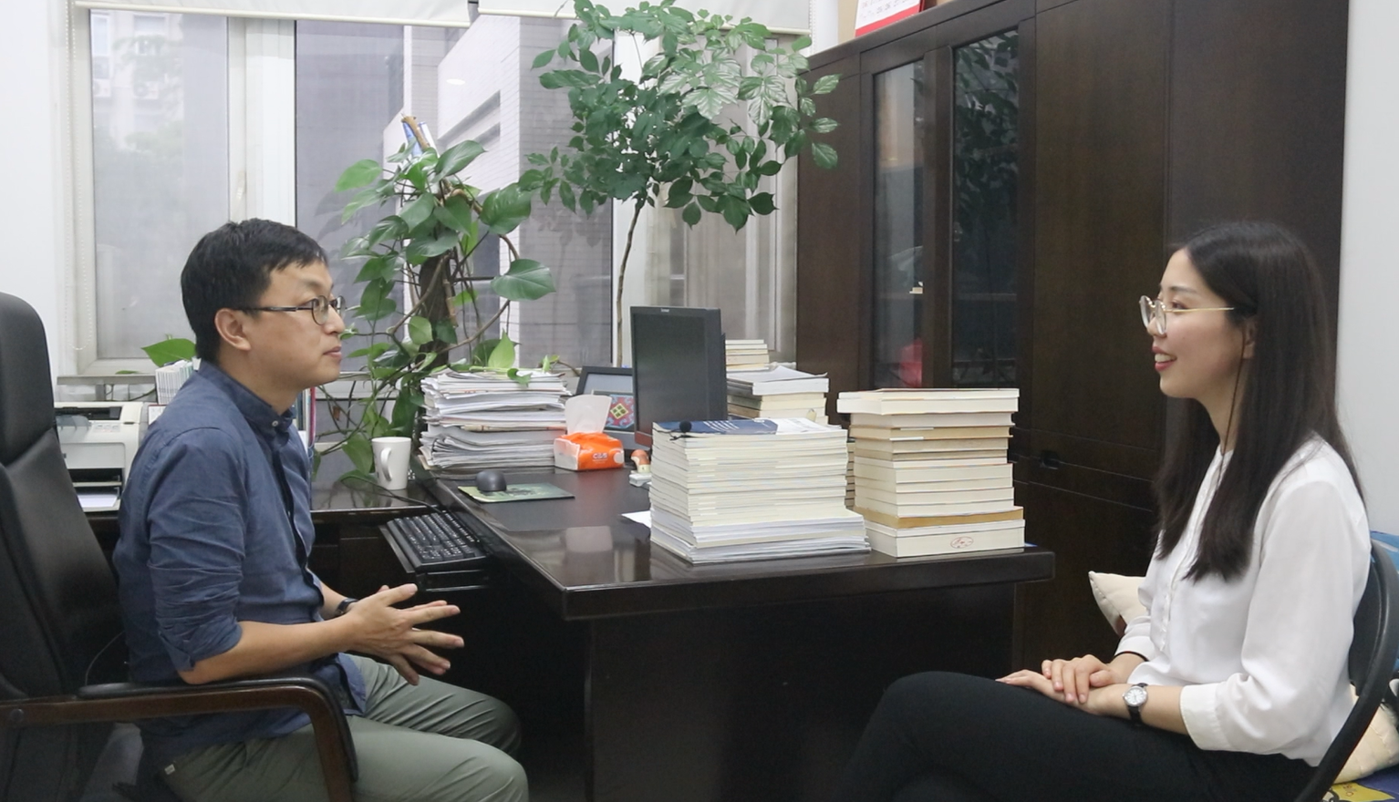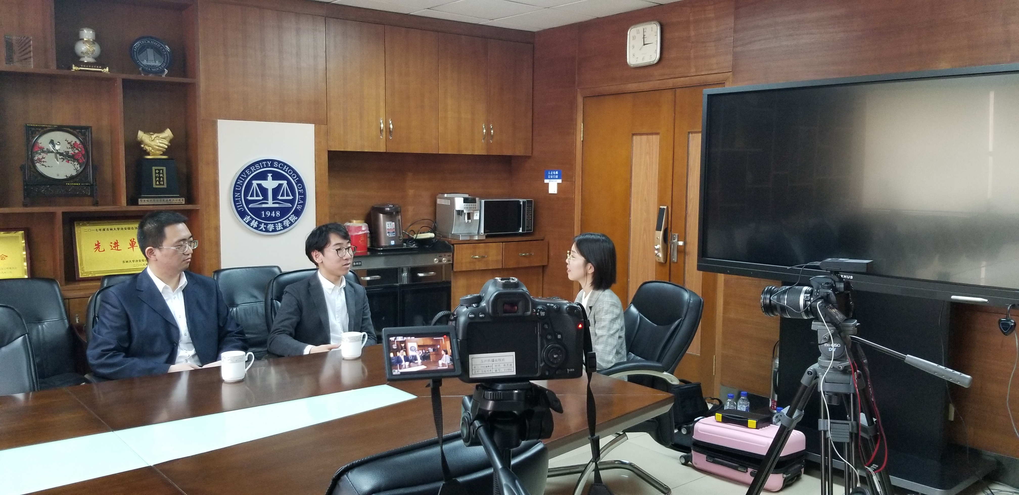 圖為吉林大學青年人權(quán)學者魏曉旭、趙健舟接受采訪現(xiàn)場。