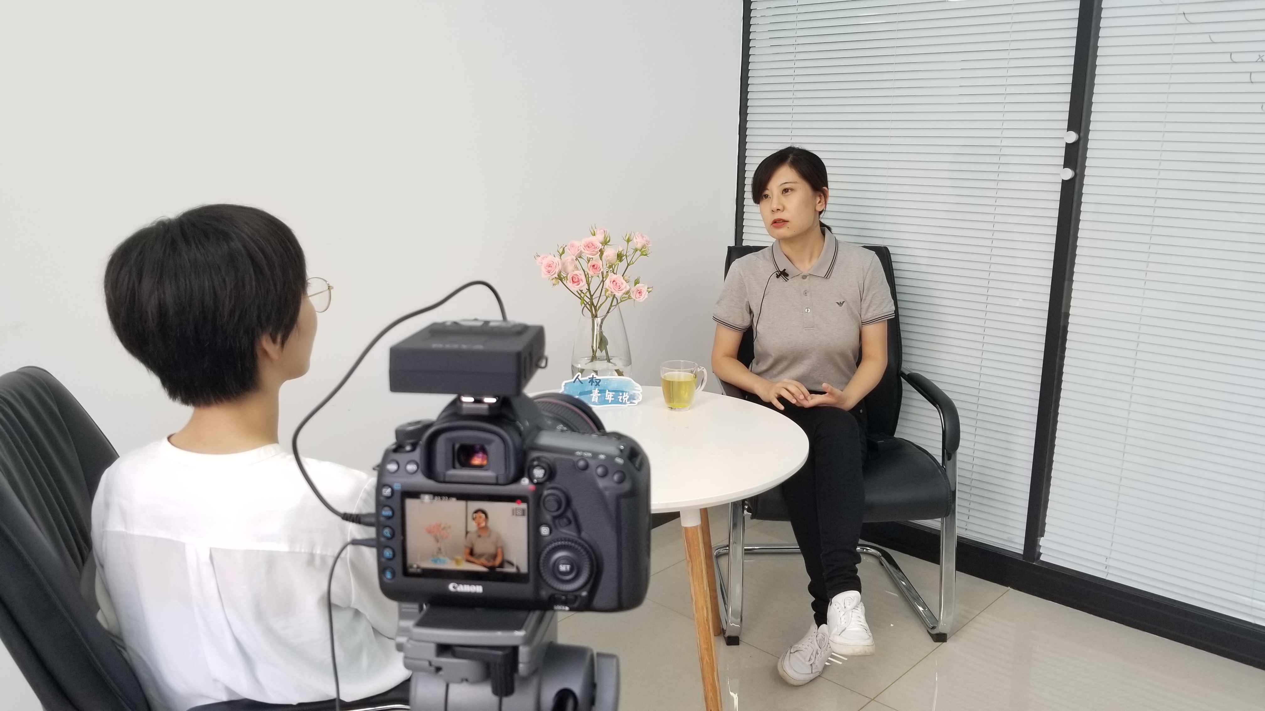 圖為西北政法大學青年人權(quán)學者任苗苗接受采訪現(xiàn)場。