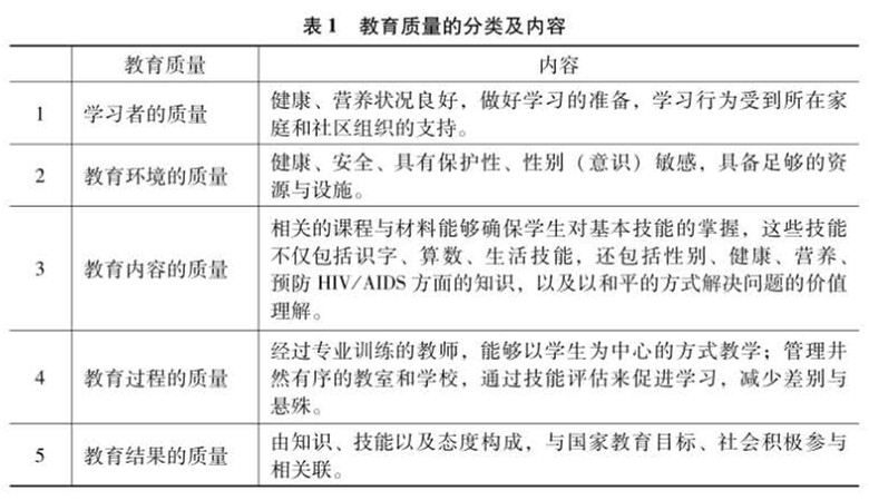 表1教育質(zhì)量的分類及內(nèi)容