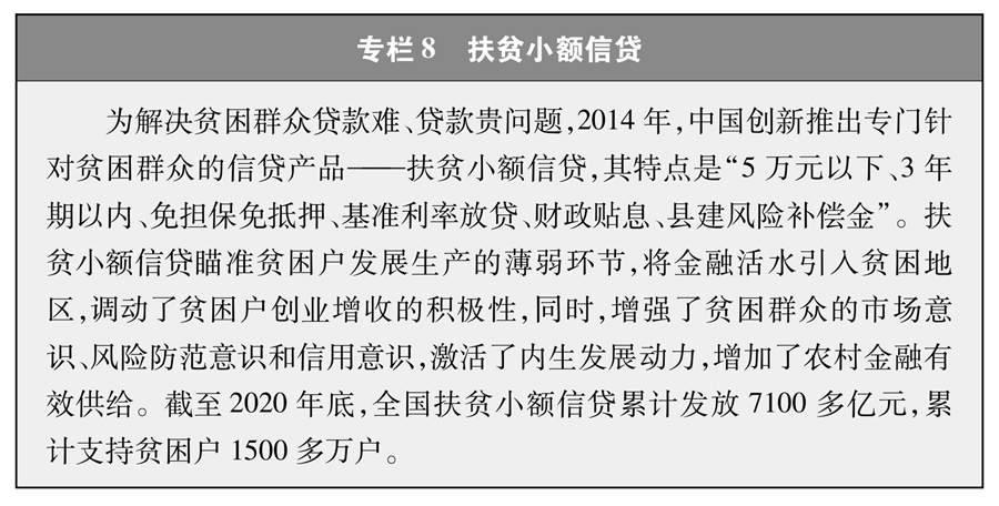 發(fā)展生產(chǎn)脫貧一批。發(fā)展產(chǎn)業(yè)是脫貧致富最直接、最有效的辦法,也是增強(qiáng)貧困地區(qū)造血功能、幫助貧困群眾就地就業(yè)的長(zhǎng)遠(yuǎn)之計(jì)。支持和引導(dǎo)貧困地區(qū)因地制宜發(fā)展特色產(chǎn)業(yè),鼓勵(lì)支持電商扶貧、光伏扶貧、旅游扶貧等新業(yè)態(tài)新產(chǎn)業(yè)發(fā)展(專欄7),依托東西部扶貧協(xié)作推進(jìn)食品加工、服裝制造等勞動(dòng)密集型產(chǎn)業(yè)梯度轉(zhuǎn)移,一大批特色優(yōu)勢(shì)產(chǎn)業(yè)初具規(guī)模,增強(qiáng)了貧困地區(qū)經(jīng)濟(jì)發(fā)展動(dòng)能。累計(jì)建成各類產(chǎn)業(yè)基地超過30萬個(gè),形成了特色鮮明、帶貧面廣的扶貧主導(dǎo)產(chǎn)業(yè),打造特色農(nóng)產(chǎn)品品牌1.2萬個(gè)。發(fā)展市級(jí)以上龍頭企業(yè)1.44萬家、農(nóng)民合作社71.9萬家,72.6%的貧困戶與新型農(nóng)業(yè)經(jīng)營(yíng)主體建立了緊密型的利益聯(lián)結(jié)關(guān)系。產(chǎn)業(yè)幫扶政策覆蓋98.9%的貧困戶,有勞動(dòng)能力和意愿的貧困群眾基本都參與到產(chǎn)業(yè)扶貧之中。扎實(shí)推進(jìn)科技扶貧,建立科技幫扶結(jié)對(duì)7.7萬個(gè),選派科技特派員28.98萬名,投入資金200多億元,實(shí)施各級(jí)各類科技項(xiàng)目3.76萬個(gè),推廣應(yīng)用先進(jìn)實(shí)用技術(shù)、新品種5萬余項(xiàng),支持貧困地區(qū)建成創(chuàng)新創(chuàng)業(yè)平臺(tái)1290個(gè)。為貧困戶提供扶貧小額信貸支持(專欄8),培育貧困村創(chuàng)業(yè)致富帶頭人,建立完善帶貧機(jī)制,鼓勵(lì)和帶領(lǐng)貧困群眾發(fā)展產(chǎn)業(yè)增收致富。