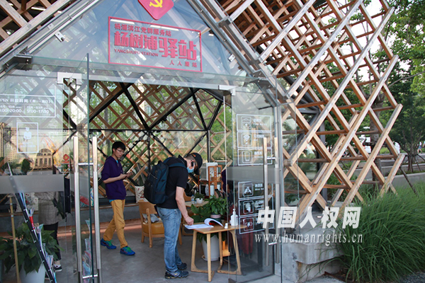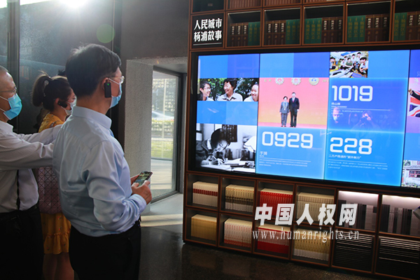 圖為國家人權(quán)行動計(jì)劃實(shí)施成果采訪團(tuán)參觀楊浦濱江黨群服務(wù)站。(攝影:耿祎菲)