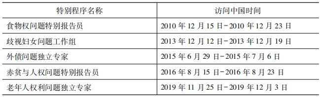 表1 2010-2019年聯(lián)合國人權特別程序對中國進行訪問的情況