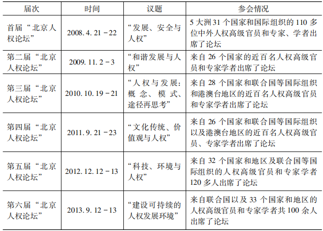 表7 九屆“北京人權論壇”情況