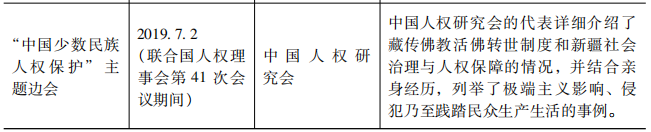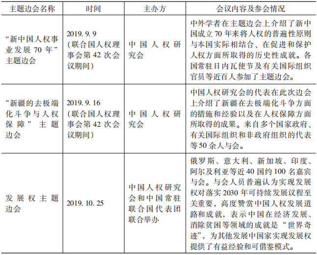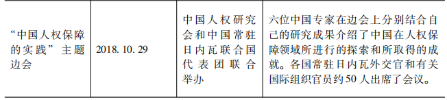 表8 2017-2019年中國人權社會組織在聯(lián)合國萬國宮舉辦人權主題邊會情況
