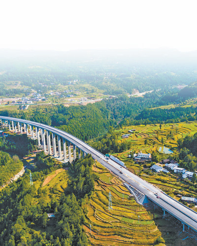 10月13日,穿越四川巴中通江縣的鎮(zhèn)廣高速公路,宛如一條美麗的絲帶。人民視覺
