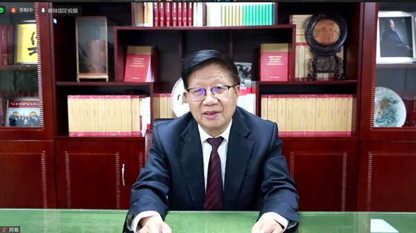 中國(guó)人權(quán)研究會(huì)副會(huì)長(zhǎng)、原中央黨校副校長(zhǎng)李君如在開(kāi)幕式上致辭。 (視頻截圖)