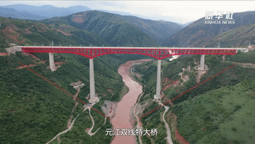 在云南省玉溪市元江縣,跨越“V”形河谷地帶的元江雙線特大橋在群山間顯得格外壯美。其中最高的3號(hào)橋墩達(dá)154米,相當(dāng)于50多層樓房高度。