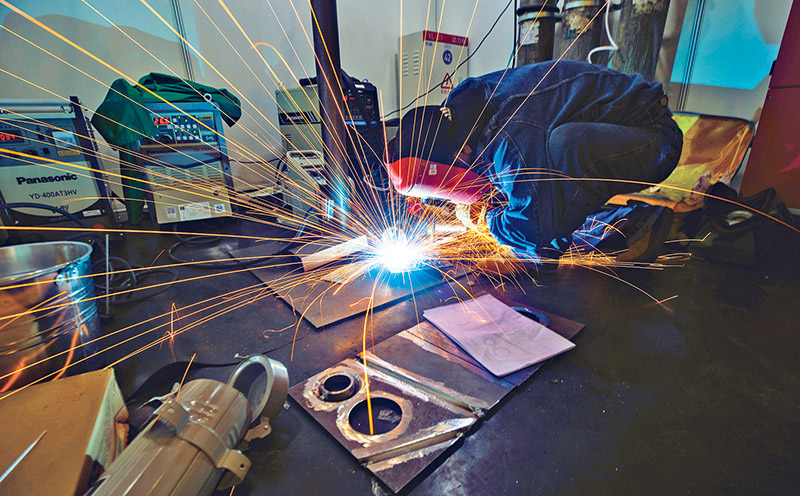 2021年10月14日至16日,第七屆全國職工職業(yè)技能大賽決賽在成都舉行,來自全國各地32支代表隊的500多名選手在鉗工、焊工、數(shù)控機(jī)床裝調(diào)維修工、工業(yè)機(jī)器人操作調(diào)整工、網(wǎng)絡(luò)與信息安全管理員、砌筑工等六個工種的比賽中一決高低。圖為決賽選手在進(jìn)行焊工工種比賽。 新華社記者 沈伯韓/攝