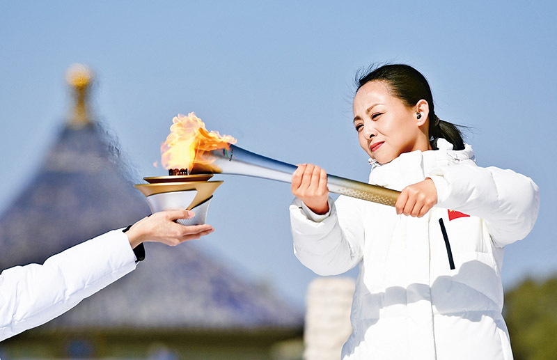 2022年3月2日,北京2022年冬殘奧會(huì)火種采集儀式在北京天壇圜丘舉行。圖為中國(guó)殘疾人藝術(shù)團(tuán)團(tuán)長(zhǎng)、中國(guó)特殊藝術(shù)協(xié)會(huì)副主席邰麗華在天壇圜丘用采集到的“夏奧之火”引燃火種盒。 新華社記者 陶希夷/攝