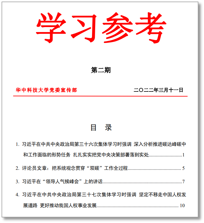 3月11日,學校黨委宣傳部及時將習近平總書記關于“中國人權發(fā)展道路”重要論述及時編入《學習參考》,并在全校范圍內(nèi)發(fā)動學習。