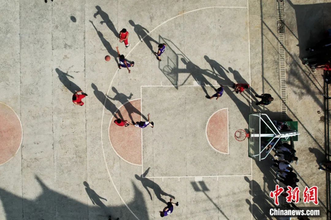 湖南省湘西土家族苗族自治州花垣縣十八洞村“村BA籃球賽”開賽,吸引村民觀看。這里是中國“精準扶貧”首倡地。楊華峰 攝