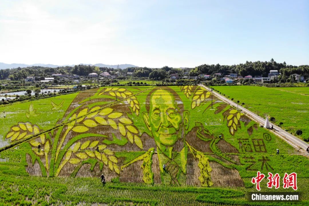 湖南長沙縣江背鎮(zhèn)五福村稻田中的袁隆平巨幅像。袁隆平對全球減貧和糧食權(quán)保障做出了重要貢獻。楊華峰 攝