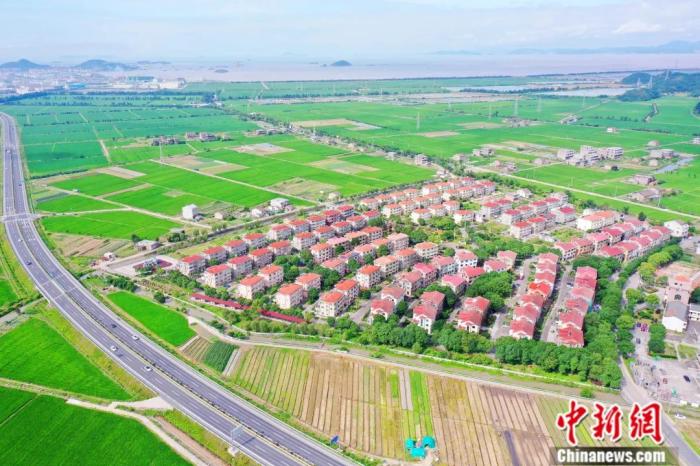 浙江省溫嶺市松門鎮(zhèn)松建村的小康型住宅與整齊劃一的田園相互映襯。劉振清 攝