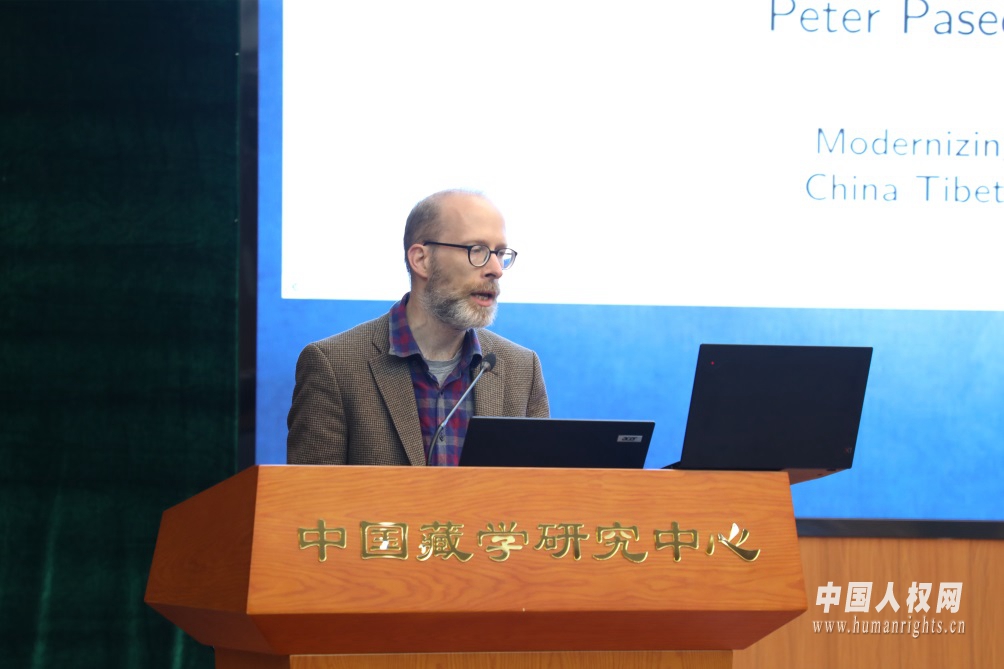 德國漢堡大學(xué)副研究員皮特•佩斯達(dá)克在會(huì)上作題為《論藏文館藏“其他”典籍:西藏學(xué)者保護(hù)梵文遺產(chǎn)》的主旨發(fā)言。中國人權(quán)網(wǎng) 焦飛 攝