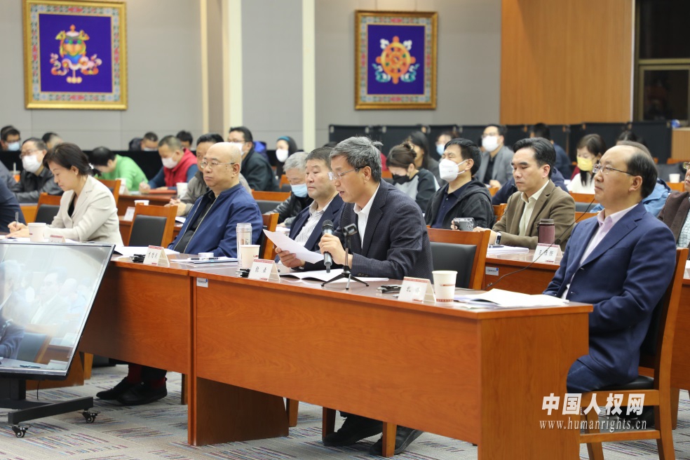 中國藏學(xué)研究中心歷史研究所研究員張?jiān)谱霈F(xiàn)場(chǎng)評(píng)議。中國人權(quán)網(wǎng) 焦飛 攝