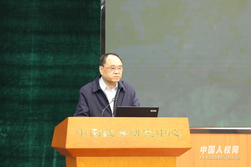 中國藏學(xué)研究中心總干事鄭堆主持會(huì)議。中國人權(quán)網(wǎng) 焦飛 攝