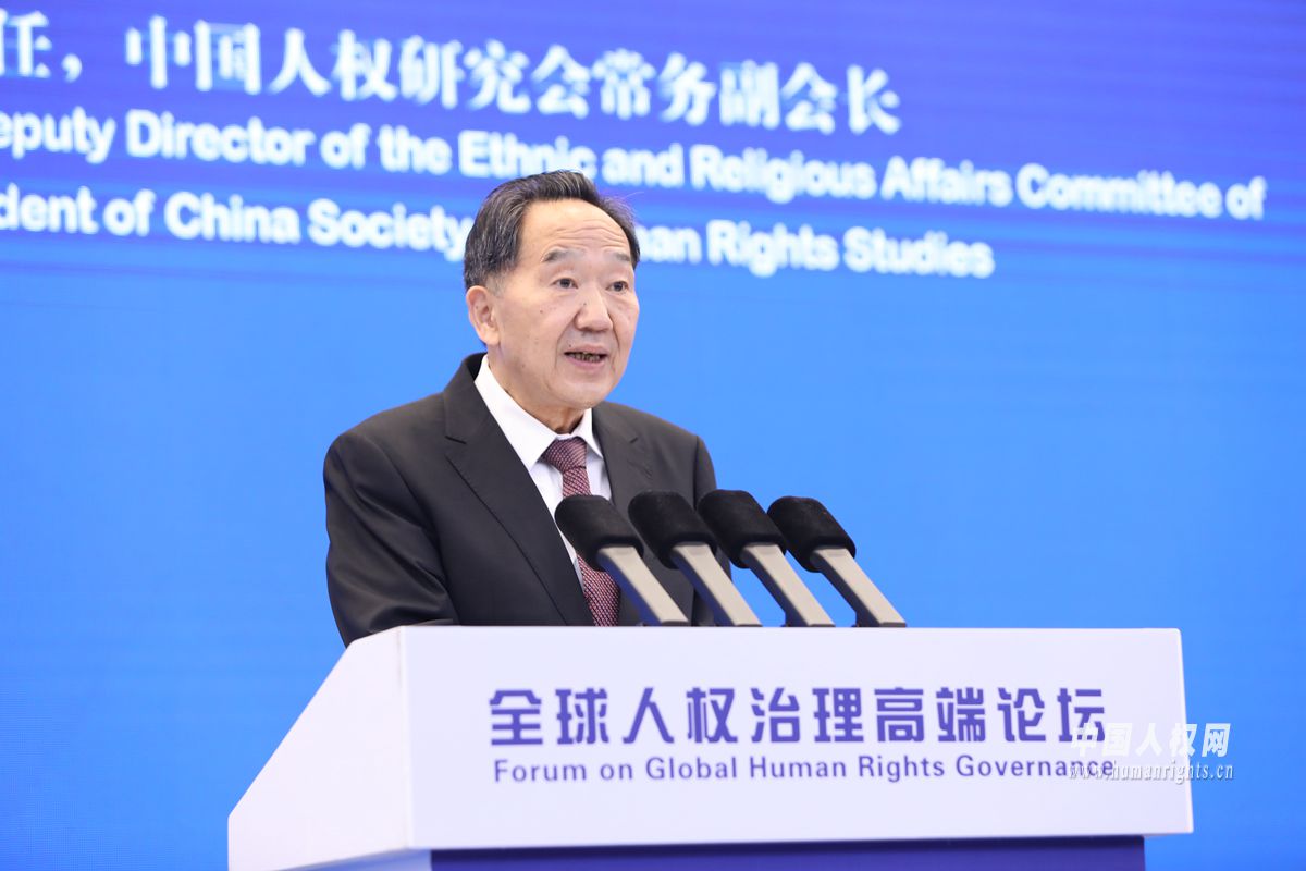 6月14日,全球人權(quán)治理高端論壇在北京舉辦。圖為全國政協(xié)常委、民族和宗教委員會副主任、中國人權(quán)研究會常務(wù)副會長蔣建國先生作大會主旨發(fā)言。攝影:欒海軍